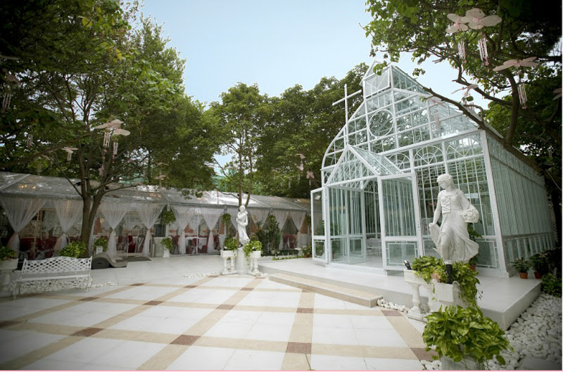 香港教堂有很多,但若是非信徒想要在夢寐以求的教堂裏舉辦婚禮,可供選擇的卻寥寥可數。而位於豪宅地段九龍塘區的伊甸園玻璃教堂及花園宴會廳,正正是少數中的不二之選。證婚教堂連宴會廳坐擁10,000平方呎的園林景色,恍如城市中的綠洲。玻璃教堂以峇里島式透明玻璃設計,高30公呎,以透明玻璃圍繞,不單可向外延展寬廣視野,更能看盡四周園林風光,置身於大自然之中。雪白的地面、長椅、支架,配以透明玻璃屋頂、讓教堂帶着一種天然無瑕的感覺,有如新人的婚姻般神聖而純潔。
